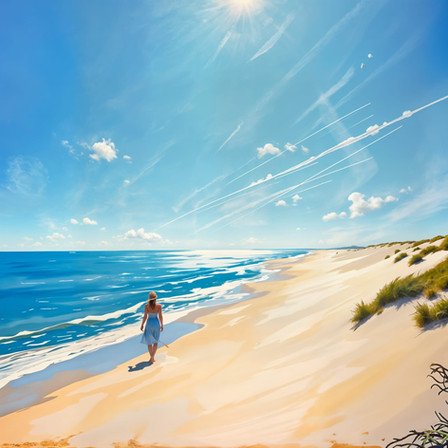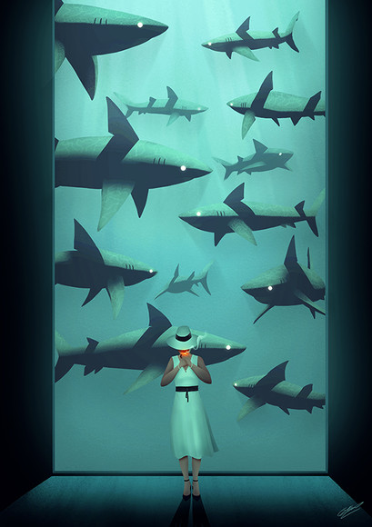 This painting makes me happy. It reminds me of being on vacation on a beach. I love the bright colors used!