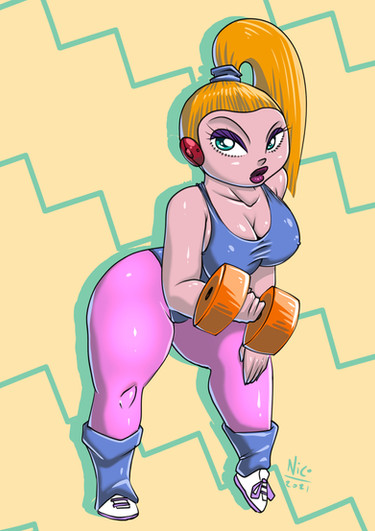 Everyone's way too focus on the chin and totally neglecting the brilliance of your 80's style glasses and other aesthetics(neon colors, walkmans with huge headphones, miami palm trees,etc.).