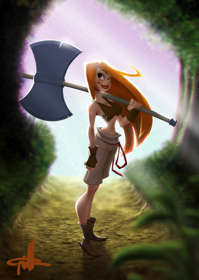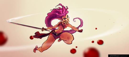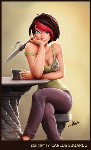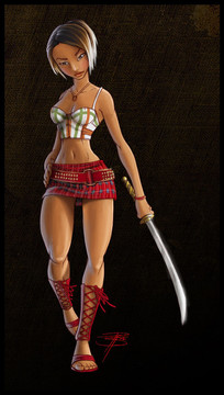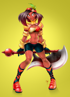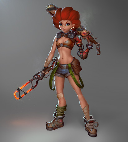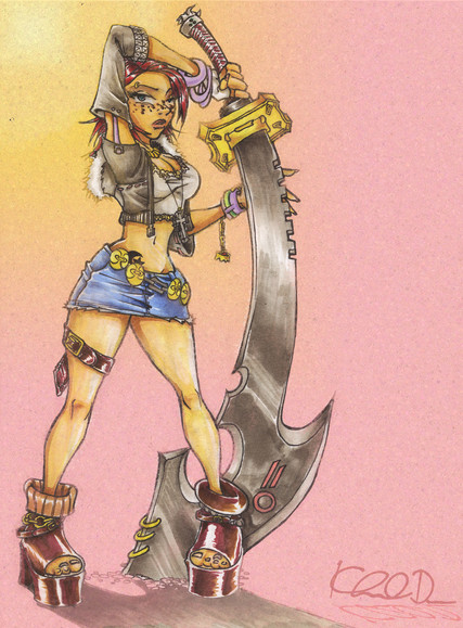 Totally loving her design and her stellarΒ hair! She looks like she could kick some major booty too, with that fabulous weapon of hers.