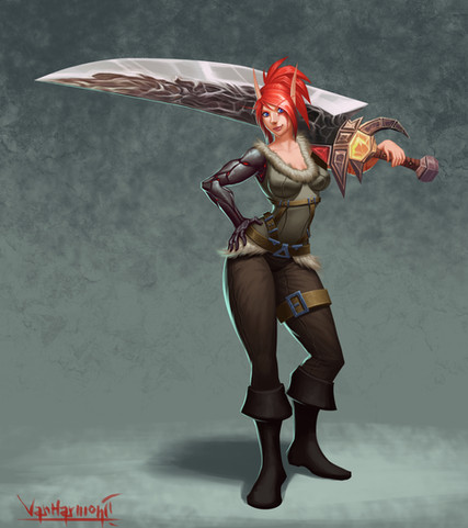 #blade #girl #shorts #smug #sword #woman #fishnets #photoshop #redhair