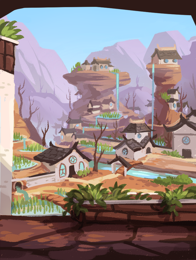I'm loving all these environment concepts! 8D The tower and the waterfall and the cave, I can really imagine how thrilling it must be for sprouts to visit this town for the first time OuO