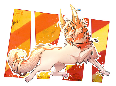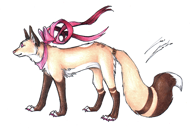 Woah, dette var et absolutt nydelig og sublimt design! Jeg elsker fargene, jeg elsker den butte halen med slΓΈyfe og jeg elsker det lille bΓ₯ndet rundt poten hennes *___*