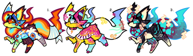 I love how many colours you've used in these designs, while still looking balanced and nice to look at. The white parts (and awesome whiskers) really make them feel complete. It inspires me to try being more bold with extra colours in the future. ^^