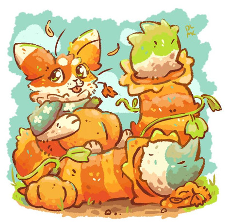IT is almost like an Easter egg hunt somewhere! 8D CUte! I love how the bright neon colors pop out from all those autumn leaves and grass!Β