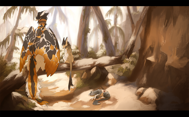 Love the little guy in the far background. Wonderful creature designs!