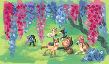 Aww, cute..! I like how the fox has two different colored eyes, it adds a unique touch.Β As always, beautiful color choice and shading!