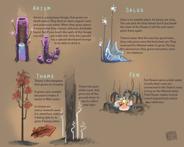 And then there's magic trees with really pretty white wood and sparkling blue leaves, and glowing white flowers, and glowing fireflowers in the desert.Β