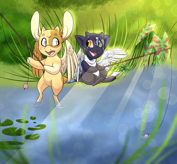 Wow... I haven't seen you do a lot of scenes, especially in this style, but this is soo pretty and your style fits so well with it! Adorable lil beans ^u^