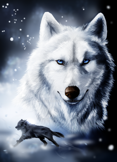 WOW! There is so much improvement! I love what you did with the colours and the blue swirls are really cool! The wolf looks so realistic! Keep it up