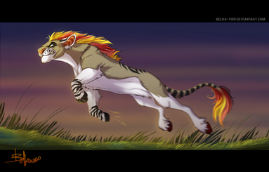 This is adorable! Love what you did with the tail, making it the same color as his hair, and that background really looks real o.o