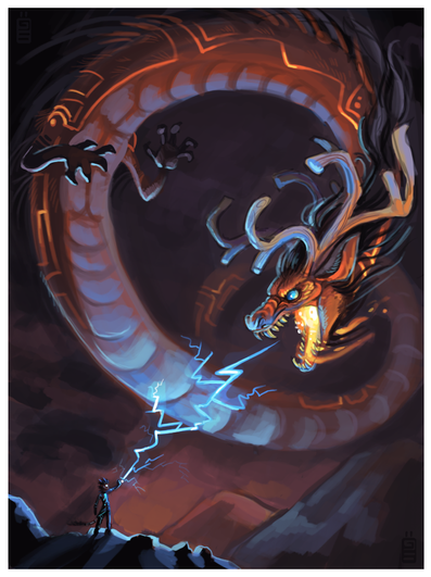 Loves the background its nice, and I like the design of the dragon. Composition wise, profiled look makes the image dull, make the dragon face turn at an angle to kill the profiled look. My last thought is this piece could go without some of that blur.