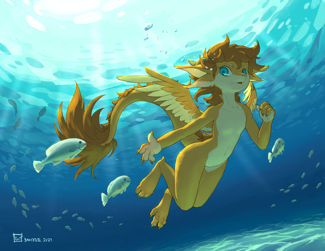 So cute! I love how the water trail kind of looks like its tail <3