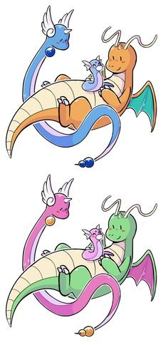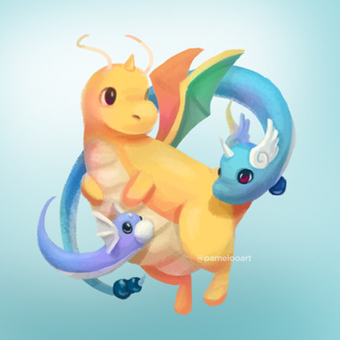 Ow yeah, Dragonite definitely stands out being not similar at all to it's pre-evolutions, I would love if it would resemble them more like yours <3