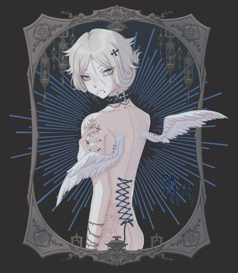 The boy looks spectacular, his hair can make anyone look good, it's such a free, wild, and gorgeous with a ghostly sheen that would make anyone hair jealous. I had to zoom in on his eyes, they're so hypnotically violet that I couldn't help, but be impressed by the level of work it must have took to make it look that way. I love the dark shading around his eye, like someone who's been deprived of sleep. I gotta admire the tiny little attention to details too like the wavy lighting around his body, it took me a while to notice it, but once I did, it really stuck out for me.