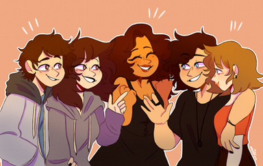 i haven't drawn canon characters with ocs in like... years?Funny because these guys are so alike, they'd get along so well. Just a bunch of pals, gentlemen giving their jackets to the gals- I thought it was cute okay!