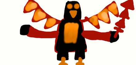 He's a giant Octopus that holds a trident and controls water and the Ocean. He's the king of the Ocean and he shoots energy from his trident. The thing on his face is supposed to be a beard. The thing on his head is a Crown. He can also be summoned by Jacob Flame and later on Garret Flame. He's also a friend of Warpath's.