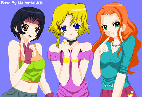 Been a long time visiter/reader of blogger Danny Choo after randomly finding an article about living in Japan many years ago. Only recently started to participate with comments and posts from late in 2008 and onward.Something fun for a culture:japan fanart submission. From left to right is Haruka (younger sister with Kanata's hair style), Mirai (sporting Haruka's hair twin tail look) and Kanata (with Mirai's trademark braid and "X" hair clip).