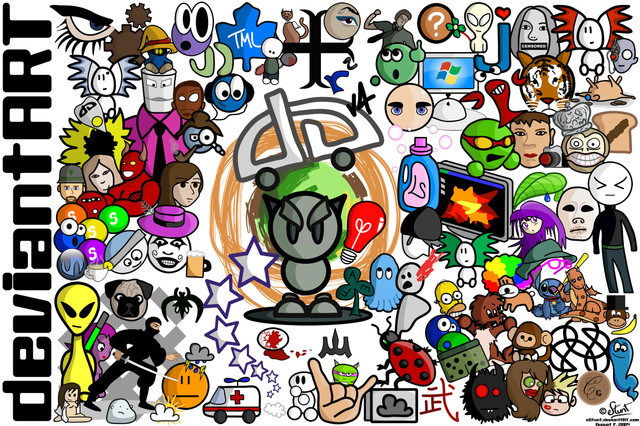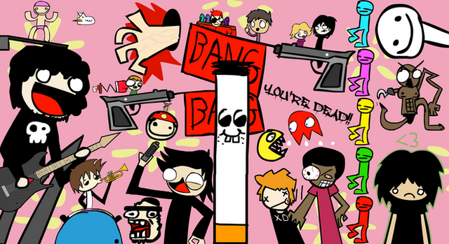 wow thats everything I like....pokemon, nightmare b4 christams, chris tucker, family guy, kill bill, gorillaz, michael jackson, outkast, dr. octagon, super mario, video games. lol those are the only ones i recognize. Oh and the one with soda drink (that show from cartoon network that comes right after family guy..) yea i dont like that show much. but other than that i like everything else. btw i really like all the little vector circles and arrows in the bg and especially the tswited arrowz in the middle.