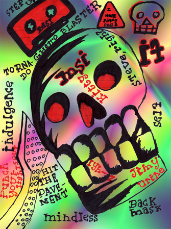 Ok Well, I've been working on this this for about a week. My goal for this drawing was to create something that would have people to stare at it for an extended period of time to see everything in the drawing. It's basically a drawing with a lot of my favorite things in it. I was orginally gonna put 86 of my favorite things in it, because 86 is my favorite/lucky #, but it turns out...I'm extremley lazy. And I got bored with the project after 3 days. So I only ended up with 29 things out of the 86 I had orginally planned. Which are as follows:86, Orange, Graffiti, Halloween, Nintendo, Super Mario, Women, Daft Punk, Gorillaz, Grape Soda, Game Records, Queens of the Stone Age, Art, Outkast, Aqua Teen Hunger Force, Disco/Funk, Friday, Family Guy, Count Chocula, Pokemon, Snowboarding, Nightmare Before Christmas, Burger King, Zapp & Roger, The Legend of Zelda, Samurai Jack, Kill Bill, Michael Jackson, Dr. Octagon