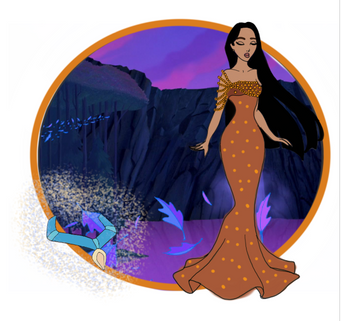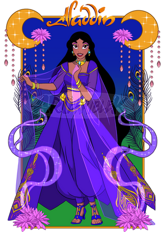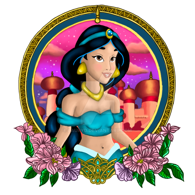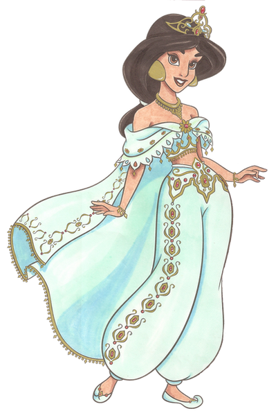 This artwork is inspired by the Original Disney movie Aladdin. The dress is very beauitful with the nice blue and green colours. The background is Jasmines castle. In front of the background and next to the dress is the magic lamp from the movie, plus some of the lilly's jasmine has in her garden.Related content