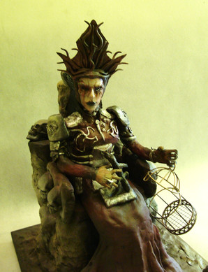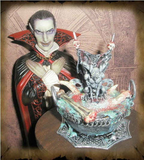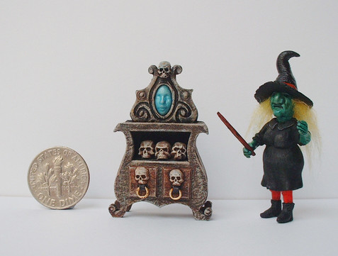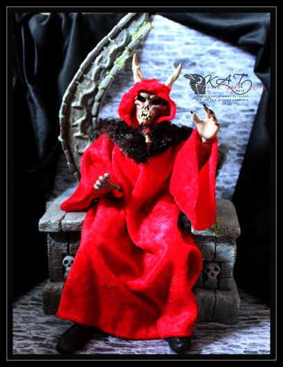This is my ooak 1:12 scale Vampire Throne for spooky dollhouses. Assemblage style made from wire, plastic, jewelry, action figures, halloween decorations, clay, fibers, etc. Painted in acrylic with inks and sparkle glaze.Related content