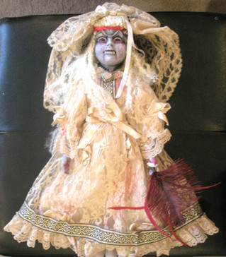 Available at: [link]Welcome to Cauldron Craft! This is my miniature Steampunk Percolating Potion Table. A magical OOAK piece that is in 1:12 scale, standing 6 ¼” tall x 3 ¾” wide. The wood circular table has a central mechanical tower with a metal umbrella and it is overflowing with secret sorcery ingredients. An unusual addition to your witch’s lair or wizard’s laboratory!