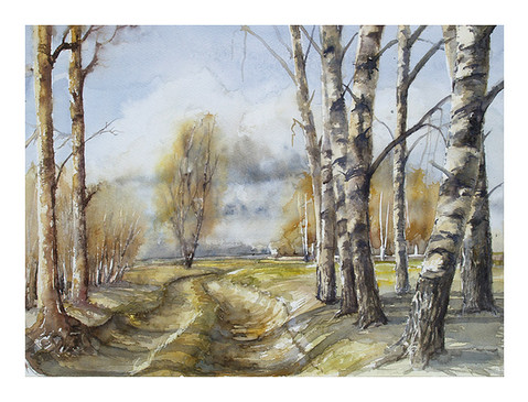 I began to use masking fluid after a few years of painting with watercolors and at the beginning I found no use for it. But then, gradually I discovered that it makes the process of painting easier and faster. Masking fluid is really needed when we want to protect some little fragment of our work from painting over it, but in case of these tree branches it's not necessary. It's just helpful