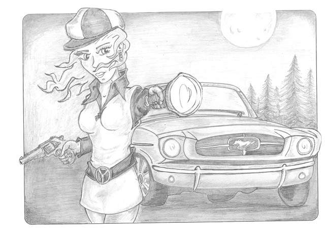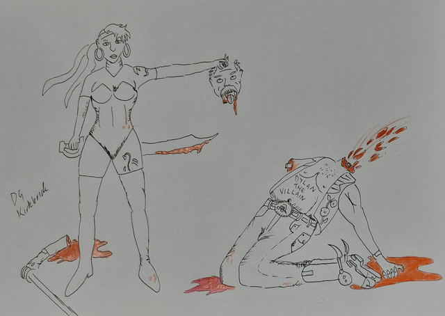 Julia St. Cloud dispatches another vampire via decapitation. She discovered this nest of female vampires posing as submissive housewives in a generally idyllic Stepford, Connecticut neighborhood. In this particular case she received some help from a local playwright, Ira Levin, who said he would write about the incident but since no one would believe in vampires he would use robots instead.