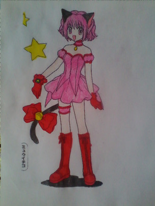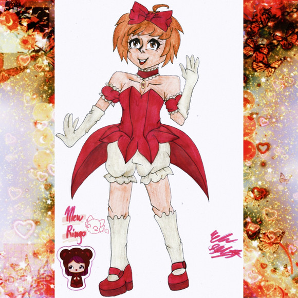 Another mew mew gift for one of my friends,mew Ringo,Zakuro isn't finished yet cus I'm lazy ^^For anyone who doesn't know,Mew Ringo is only in the video game,and short story mangas at the back of the TMM series. Even though her purpose was for the video game,Mia Ikumi still designed her. Her animal is some kind of penguin,NOT a lady bird