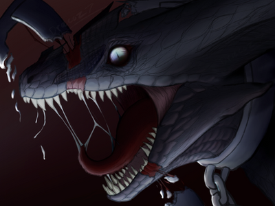 "Dragons were hunted for a few reasons; to kill for profit, to exterminate as "vermin", to use their parts for armor and weapons, for self-glorification and impressing others with their ability to take down the most powerful thing on earth... but a dragon would rather suffer the fates above than spend the rest of their lives in captivity- made a spectacle, a side show, an exhibit.... a fading legend whose spirits slip away gradually before age and cruel conditions take life."Okay I need to do happy stuff soon. I keep doing sad stuff lately lol. Someone frees her eventually...if that helps XD;