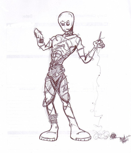 The Visual Assualt Universe: My first group shot highlighting a number of characters I have created. My first work on comic page bristol board, inked with a crow quill tip pen.Related content