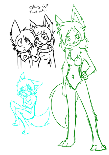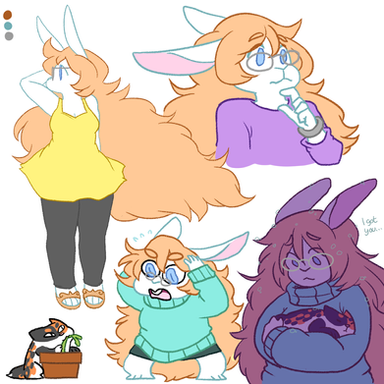 I really like this chick, I've seen you drawing her over tumblr every day and I really like the small improvements you've made on her over that time. I love her huge hips ;u; <3 That outfit on the lower left is epic, keep it like that! <3 Great pics allie. she's a precious lil buggu<3