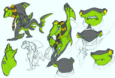mega quick ref for this random lizard/shark/dragon... thing i've been doodling the past week or two, lmao.named him spaz. since he's supposed to be a chaotic kinda character. thought it'd fit him.
