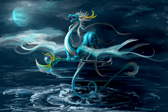 Haha... my valentine deviation didn't finish on time so I'll just submit something else.The Azure Dragon (traditional Chinese: 東方青龍; simplified Chinese: 东方青龙; pinyin: Dōng Fāng Qīng Lóng) is one of the Four Symbols of the Chinese constellations. It is sometimes called the Azure Dragon of the East. It represents the east and the spring season. It should not be confused with the mythological yellow dragon that is associated with the Emperor of China.