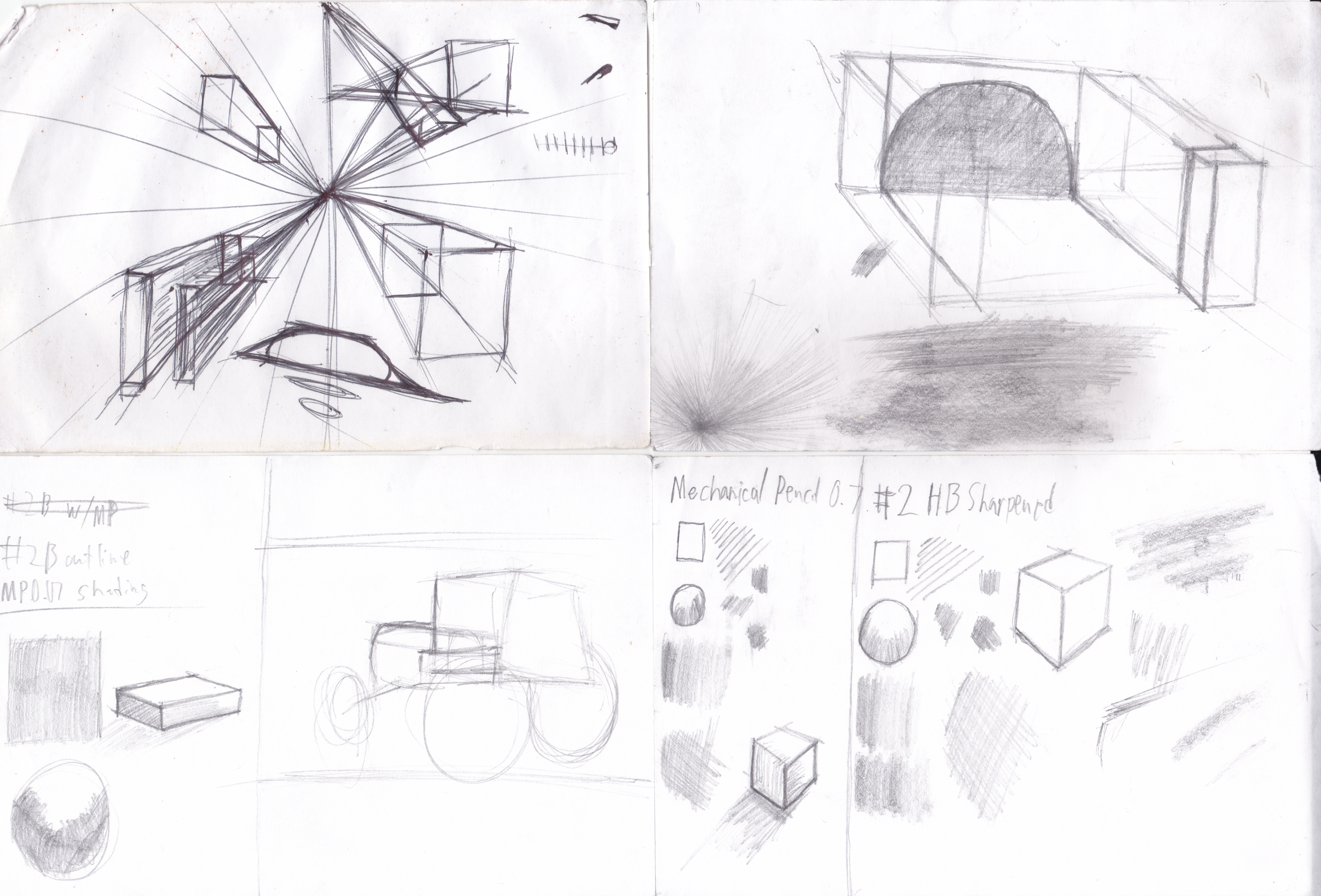 Here we have something that is difficult to truly name...Except for Fig. 3, which is similar to the 4VP image on the previous page, what are these? They are NOT true four vanishing point images, since they deal with a center vanishing point and two for the curved lines- yet those curved lines are normally associated with perspective beyond three vanishing points.