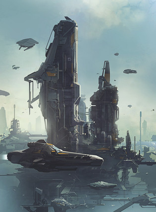 #grivet #2dart #bastien #conceptart #digitalpainting #galaxy #hangar #odyssey #planet #sciencefiction #scifi #spaceart #spaceport #spaceship #grivetart #wardenlight