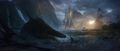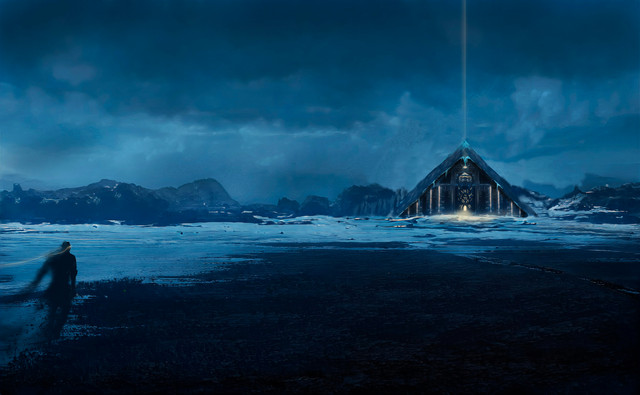 Pretty simple composition, but the rendering on it is great. The mid ground looks detailed enough to be a matte painting, if it isn't.