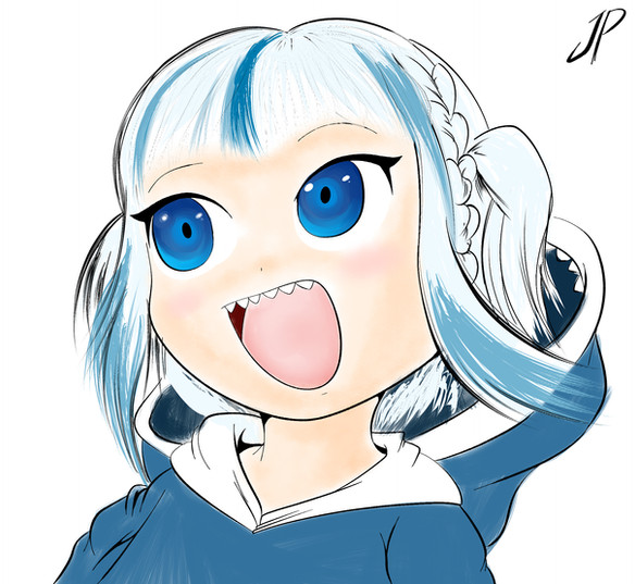 So, it's October again and you know what that means. I am going to attempt Inktober once more. For those who don't know, Inktober is where you draw a picture everyday, in ink preferably, in October using daily one word prompts. You can use any prompts really but I just use the ones on the Inktober website because I'm too lazy to come up with my own or look for other ones. Anyway, the first prompt was "fish" so I decided to do a picture of the Apex Predator herself, Gawr Gura. If you couldn't tell, it's a parody of the Jaws movie poster. I'm pretty sure sharks count as fish, right? Either way I did it and I think it came out pretty nice. So far so good!