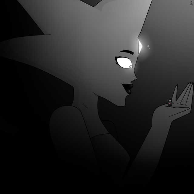 Booming voices deafened his ears, blurred blue and yellow shapes loomed closer but the walls containing him only warped them further making their identities obscured! The sounds were coming from what was before Steven and soon it was all too apparent that he was being observed from within wherever he was! White Diamond gently lifted her fingers in a flaunting fashion, she had a ring made to wear upon her graceful finger to complement her immense elegance and beauty, she didn't know that Steven was encased in the ring's gemstone but even if she did it likely would have only worsened his situation in some way. With each flick and turn of her wrist Steven is shaken around like a useless toy inside a capsule for the amusement of his unknowing captor, he could barely cope with Diamond when she acknowledging him but now he had been reduced to an accessory!