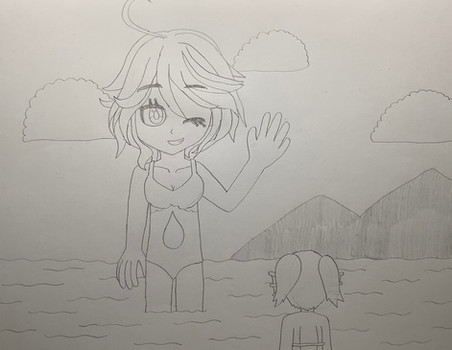That's right, this story is more than just Marine and I! Marine was too focused on sailing ahead to realise she was being watched by none other than Gura - more specifically the Bermuda Triangle in all its mystery had transported Marine into Gura's bath which she currently believed to be a new body of water and more importantly, she was tiny, like toy boat tiny and honestly it's an adorable sight. Still, Gura was just as shocked as you are and almost dropped the pizza she was eating in the bath...again! She sat there intently watching Marine and gently kicking the water around with her legs to help her along, eventually Gura would have to inform her senpai of the situation but she was content simply watching her for now. Hopefully she won't forget and pull the plug out...