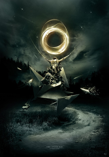 This piece is very simple and yet very appealing. The exclamation mark, I think, is perfectly enhanced by the dynamic blasts of black from behind (above and below) the '!'. The vignette, the smoke, the cracks etc... are all very nice touches and interesting elements of the piece.