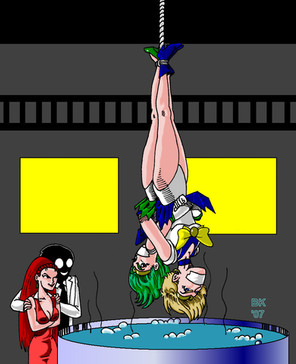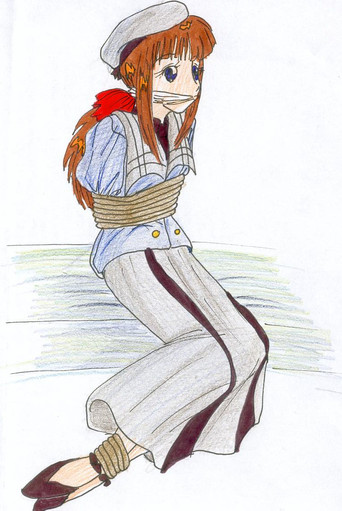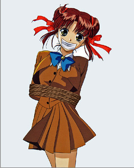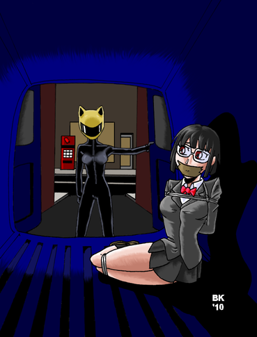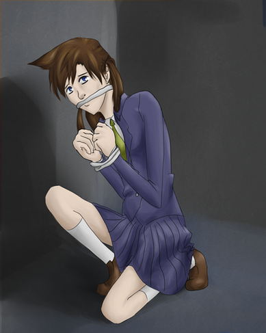 I'm sure I'm not the first person to come up with THAT pun.AAA29 asked for a picture of Ran (Rachel Moore) Mouri from Detective Conan (known in the US as "Case Closed", to my eternal shame) in the type of difficulty girlfriend/daughters of detectives occasionally end up being in. Imagine you're trussed up in a dark, cold basement when suddenly the dark is pierced by a flashlight. You can see the shadowy figure behind the blazing light, but you're not certain if it's rescue or doom.