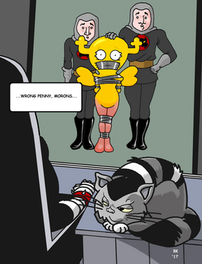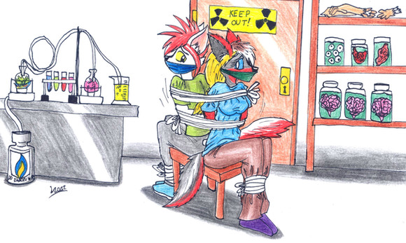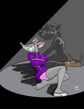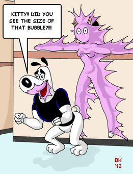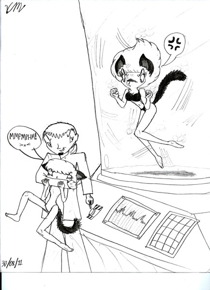Bagifan123 requested I do a picture of Bagi in the clutches of yet another scientist who sees her as nothing more than a lab animal.This was a challenge at first, because I'd never heard of Bagi in fifty some years on this planet. Sadly, Osama Tezuka's works aren't widely distributed in the U.S. I knew about Astro Boy and Phoenix, but not a lot else. Fortunately I was able to find the film "Bagi Monster of Mighty Nature" on Youtube and I was able to get a feel for the character. If you want to see it, too, it's still on Youtube - - at least until some copyright holder finds out.