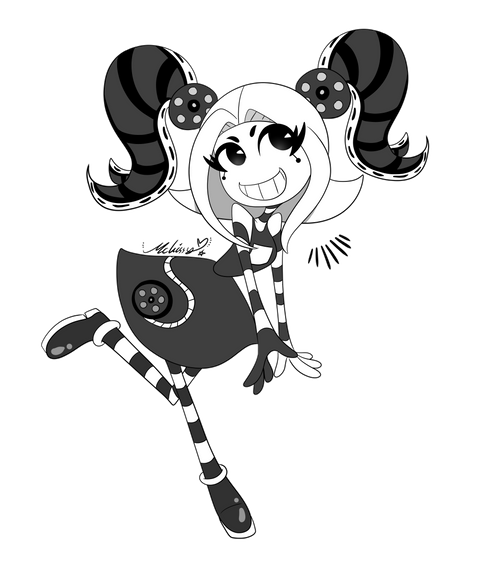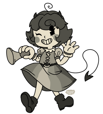 a new face joins the circus... and their name is pitch! they're a trouble-making imp and the hypnotist of the group!they take the form of a retro b&w cartoon gal (they are shown here in full color, or rather, lack thereof) & can usually be observed humming show-tunes~
