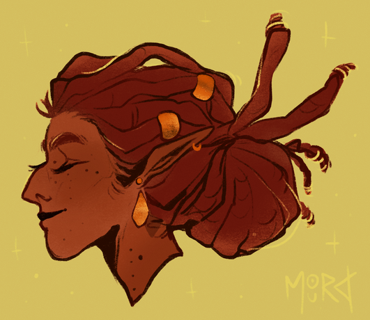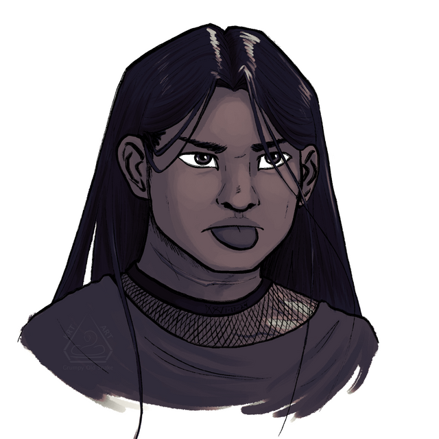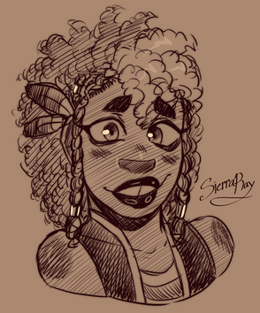 #portrait #blackwoman #bust #catsmile #digital #mischievous #naturalhair #smile #grumpyoldsnake #art #expressionprompt #krtart