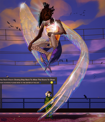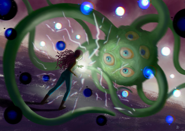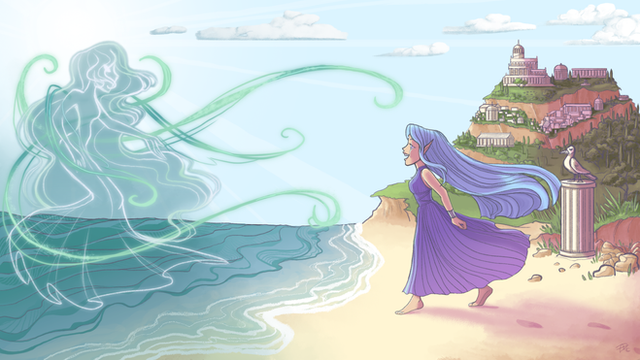 A speech-bubble-free panel from this comic ! Featuring ZodiacMage 's character Masha, and a wraith that is very upset with the experiments that engineers from Abime Spire have been conducting on it.~o0o~