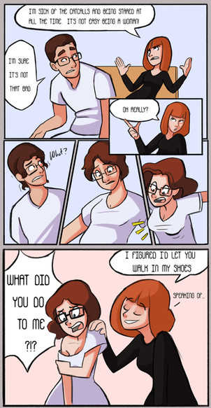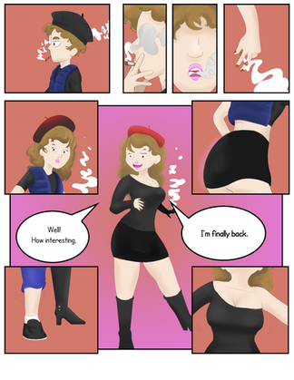I've definitely got a couple works where subjects are expecting/pleased with their transformations, but since most of my TG works at this point are commissions, there's not a lot of variety, simply because people don't seem to be that interested in willful transformations. my personal theory is simply lack of conflict. if you have someone transforming (in a self contained sequence or comic page) and they're shocked or scared or angry, then something's really happening, theres a story there. if there's no conflict it's a lot harder to make it interesting. That being said there is a person who seeks out and ultimately (after some hijinks) succeeds in transforming into a woman willingly in TGP Vol. 2.
