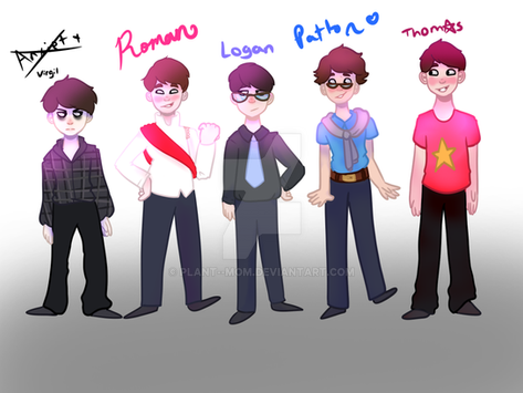 Aw the backgrounds suit them all so well-- Logan looks annoyed/bothered, Logic just wants to go back to work LOL... Idek what Patton is thinking!! XD