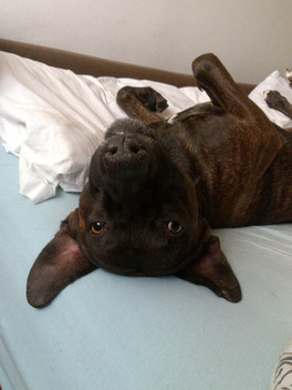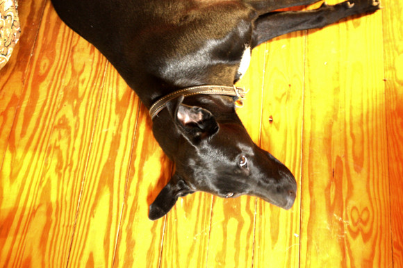 This is my dog, Bud, looking very odd on his bed.If I submit any more pictures of my pets, gimme a smack. Thanks.