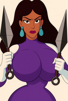 She's gone through a augmentation process that gives her enhanced lower body leg strength(90+) allowing her150 mile an hour running speed, leaping 110 ft in the air and devastating kicking and stricking power. She's knowledgeable in fire arms and martial arts.